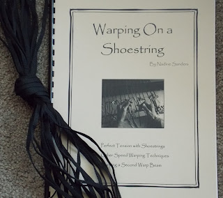 For someone who only wears sandals or clogs, finding shoelaces wasn't that easy. Thank goodness I was able to get some from Nadine Sanders when I was at Midwest Weavers Conference. I also picked up her booklet "Warping On A Shoestring" to help me remember what she showed us in my three day workshop with her. The only way for me to know if this is the way 'for me', is to try it out!
